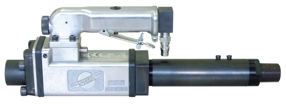 Solo conecte el aire y ya esta listo para trabajar. Un cuerpo compacto le concede el manejo fácil y una alta eficacia. Usted puede mantener la herramienta con las manos, mientras a la misma vez la está accionando.