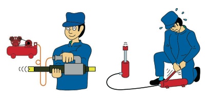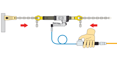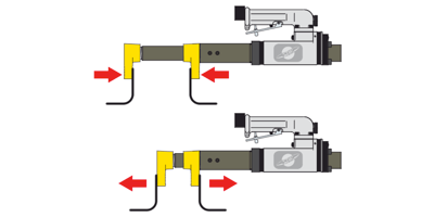 Usted solo necesita una herramienta para empujar o para encoger. Simplemente hay que accionar la válvula de inversión. Muy práctico, sencillo, manejable, potente, limpio... Es único!!!