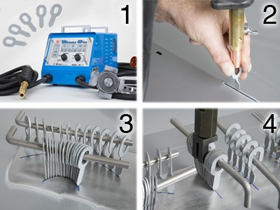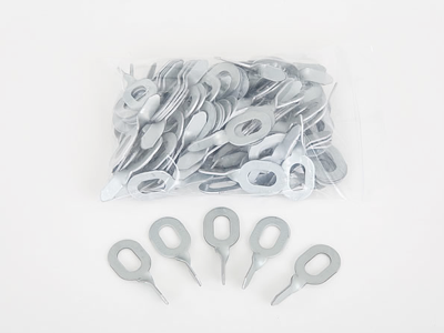 Tienen la característica de poderse soldar prácticamente una junto a la otra. Sabiendo que cada arandela es capaz de soportar 75 Kg. de fuerza, quiere decirse que no hay zona abollada que se les resista. Tienen una forma alargada para poder penetrar muy profundo. Y su agujero coliso (alargado) nos permite pasar la varilla con facilidad.
