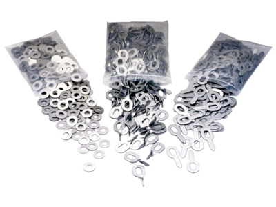 Las Arandelas Miracle están fabricadas de un acero dulce, que permite su adaptación a la posición de tiro, con la particularidad de no desoldarse al moverse. Se distribuyen en bolsas 800 gramos y de unas ±110 unidades por bolsa.